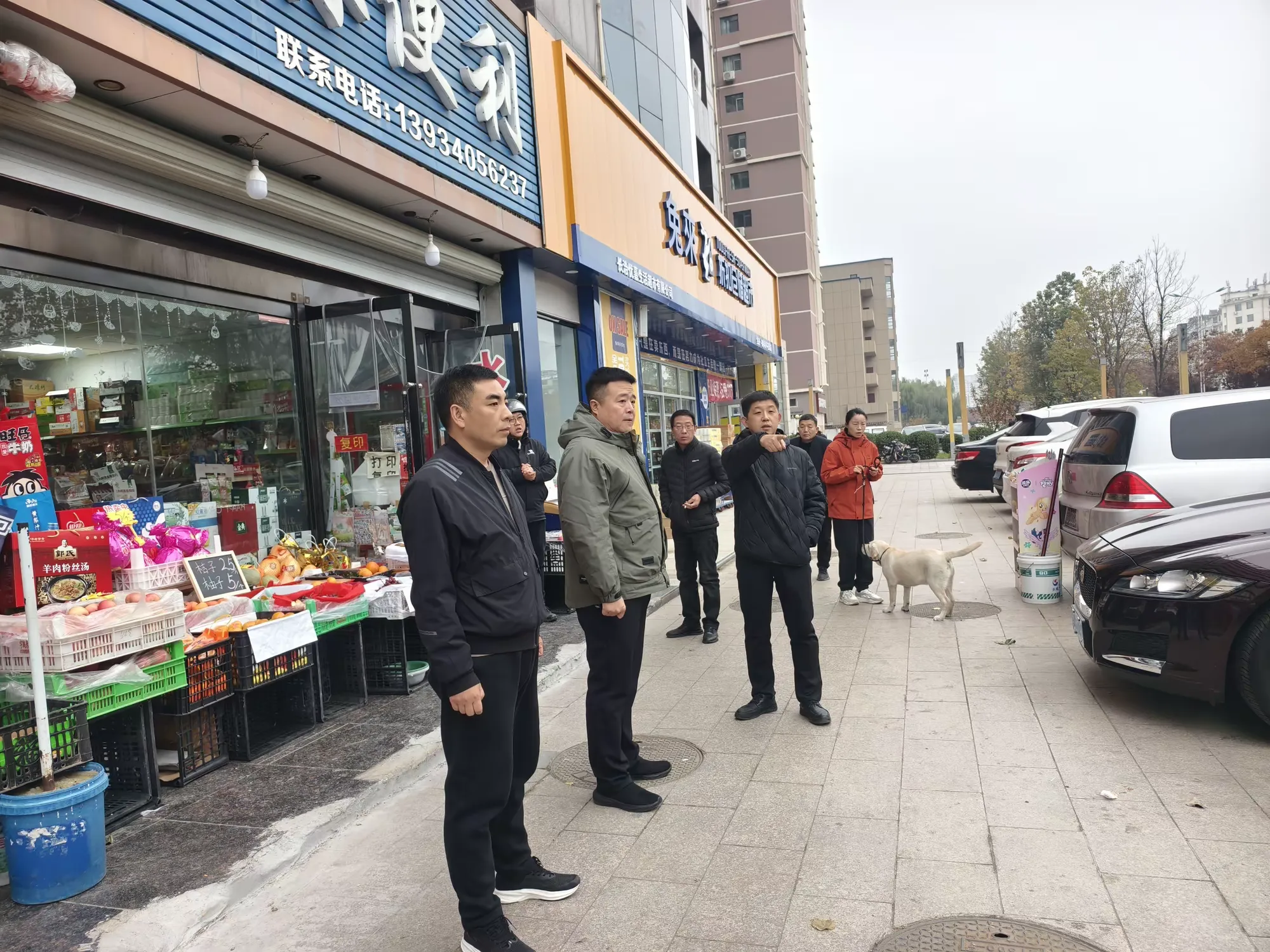延南街道办事处主任申卓潭带队,到枫林和平花园小区就门店规范经营、小区外停车场划分进行实地查看并提出整改意见。
