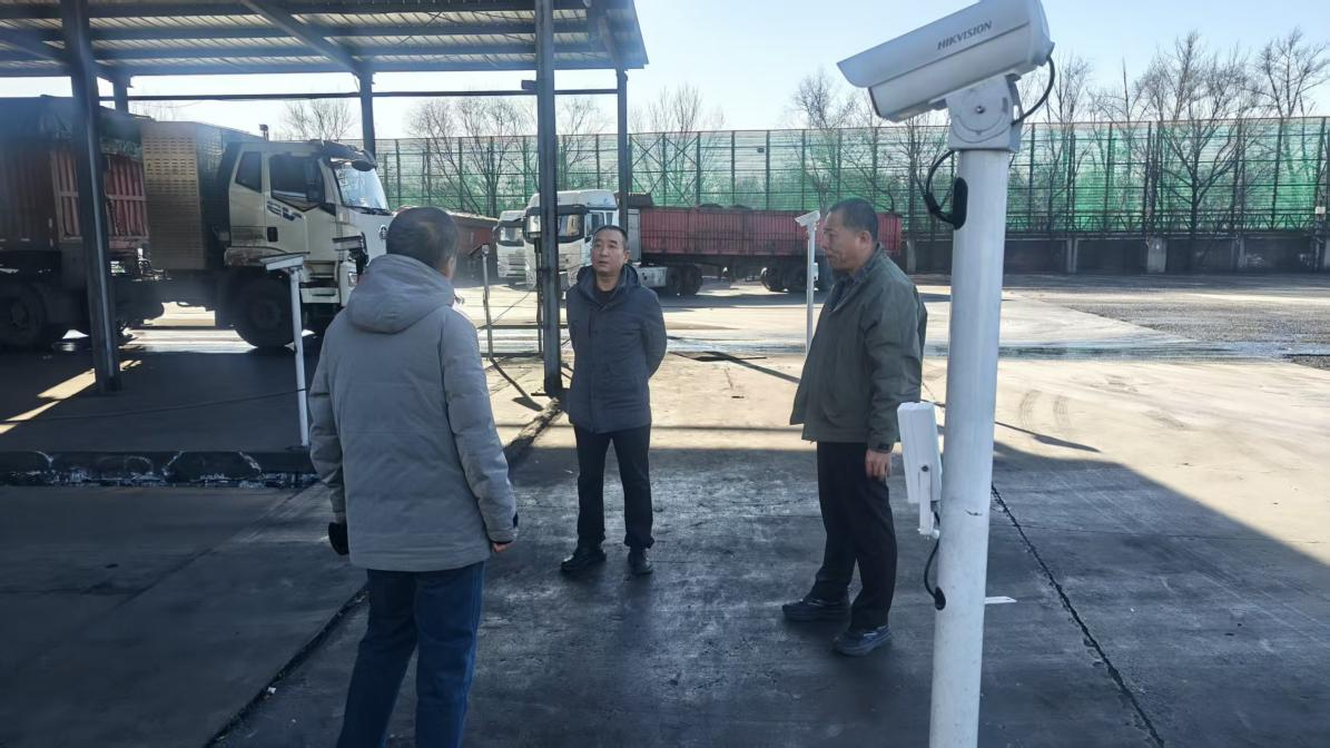12月4日,局党组成员、发展中心主任刘震带队到王庄煤矿现场考察科技治超平台安装。