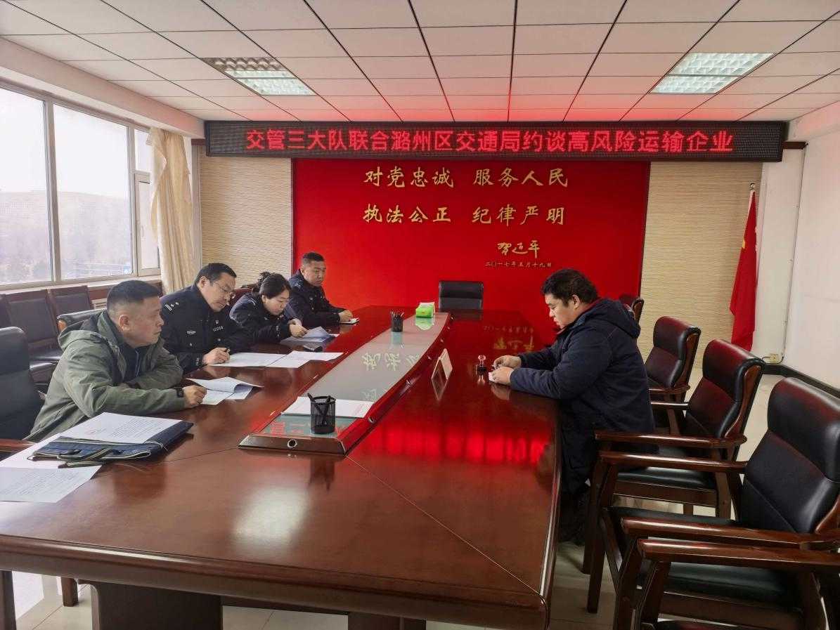 12月25日,联合交警七大队,对运输企业利嘉商贸有限公司进行约谈。