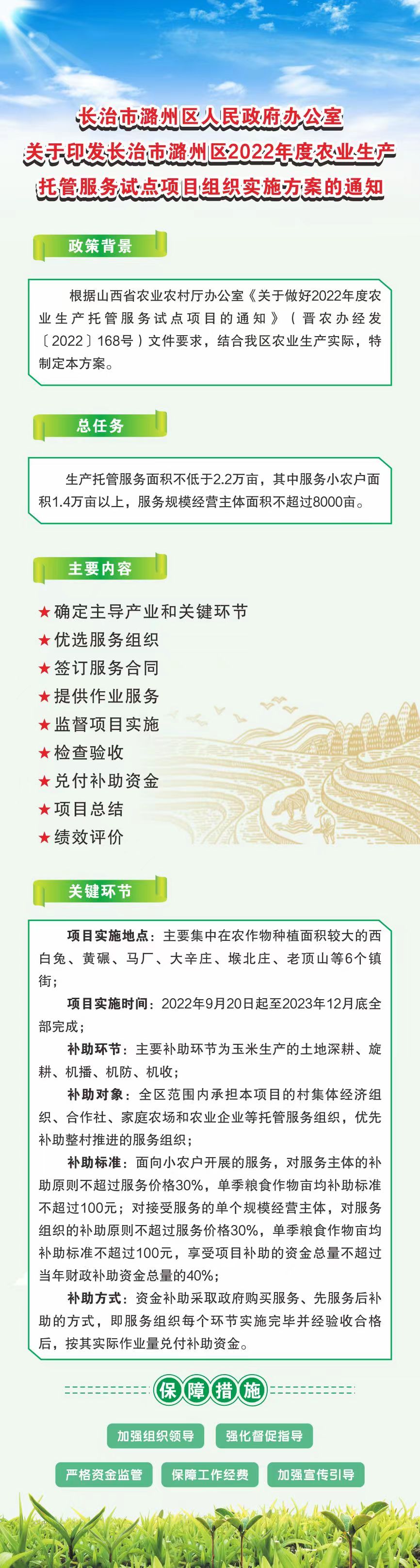 原文链接:长治市潞州区人民政府办公室关于印发长治市潞州区2022年度农业生产托管服务试点项目组织实施方案的通知